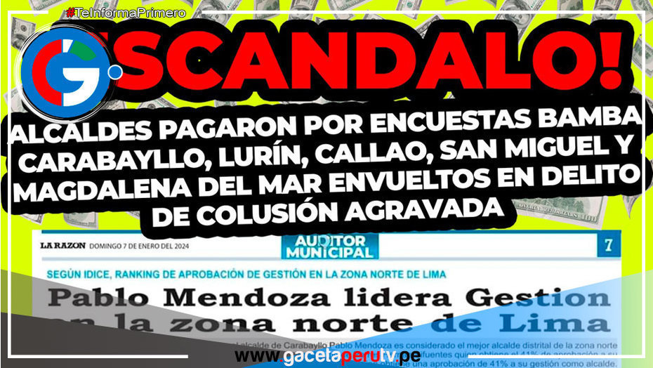 Este financiamiento cuestionable colocó al alcalde de Carabayllo, Pablo Mendoza Cueva, en la primera posición con un 76% de aprobación, generando preguntas inquietantes sobre la veracidad de la encuesta.