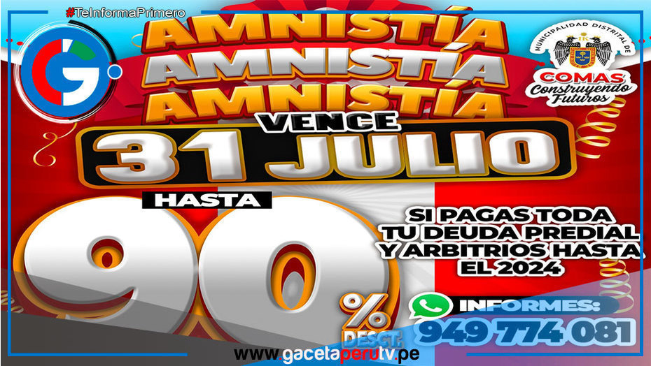 La Amnistía Tributaria en Comas estará disponible hasta el 31 de julio de 2024, brindando a los contribuyentes una valiosa oportunidad para ponerse al día con sus obligaciones y contribuir al progreso del distrito.