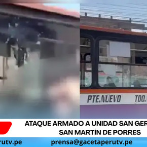 SMP.- Un bus de la empresa de transporte San Germán fue atacado a balazos este domingo en San Martín de Porres, en un nuevo episodio de violencia contra el transporte público en Lima Norte. La unidad, que avanzaba repleta de usuarios, recibió doce disparos en el cruce de la avenida Germán Aguirre con la calle Las Magnolias, generando pánico entre quienes iban a bordo y entre los vecinos de la zona.