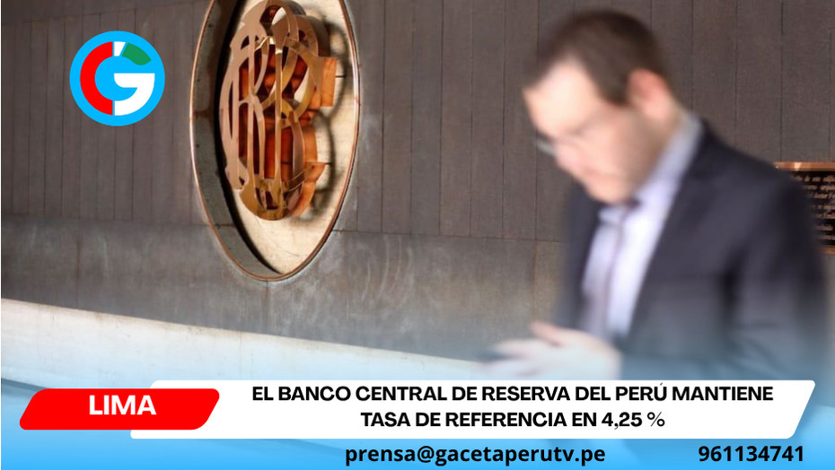 Lima. -El Directorio del Banco Central de Reserva del Perú (BCRP) acordó mantener la tasa de interés de referencia en 4,25 %, decisión que marca dos meses consecutivos sin cambios tras una reducción previa en septiembre.