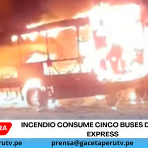 Puente Piedra.- Cinco buses de la empresa "Pegaso Express" quedaron completamente calcinados tras un incendio en su cochera, situada en la avenida Valle Hermoso del asentamiento humano Jesús Oropeza, en Puente Piedra, Lima.