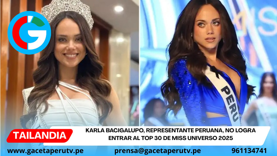Tailandia. -La representante peruana Karla Bacigalupo quedó fuera del Top 30 del certamen Miss Universo 2025 tras no alcanzar los votos necesarios en la votación digital del público, conocida como People’s Choice, un mecanismo que cada año permite que solo una candidata obtenga pase directo a la siguiente fase. Aunque la peruana contaba con campañas activas de apoyo desde redes sociales y una comunidad que la respaldaba, no logró superar a su competidora paraguaya, quien acumuló el mayor número de votos entre todas las aspirantes.