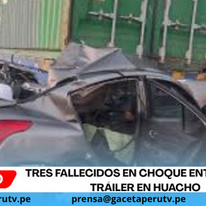 Huacho.- Tres personas murieron el domingo 16 de noviembre en Huaura–Huacho, región Lima, tras el choque entre un auto y un tráiler en el kilómetro 138.2 de la Panamericana Norte, en la zona de El Paraíso.