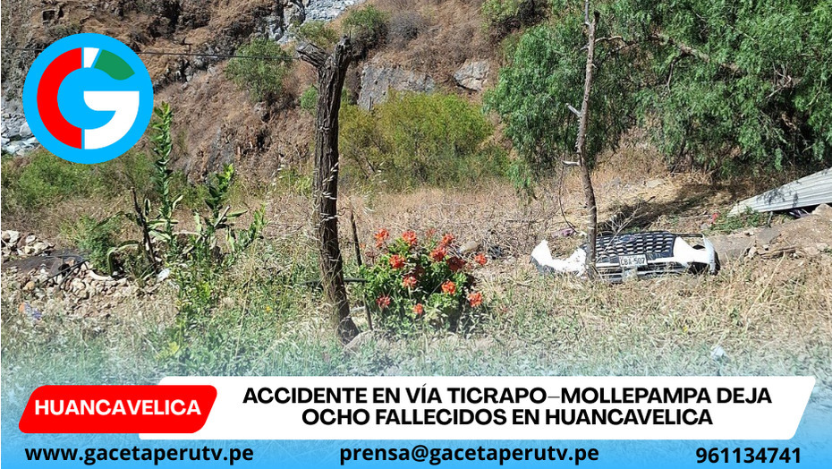 Huancavelica.- Un trágico accidente de tránsito ocurrido en la vía Ticrapo–Mollepampa, en la provincia de Castrovirreyna, región Huancavelica, dejó un saldo de ocho personas fallecidas y varios heridos, generando consternación entre la población local y evidenciando nuevamente las precarias condiciones de seguridad vial en carreteras rurales del país.