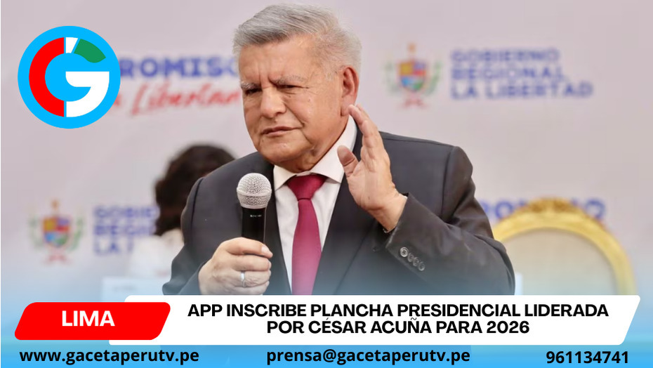 APP inscribe plancha presidencial liderada por César Acuña para 2026