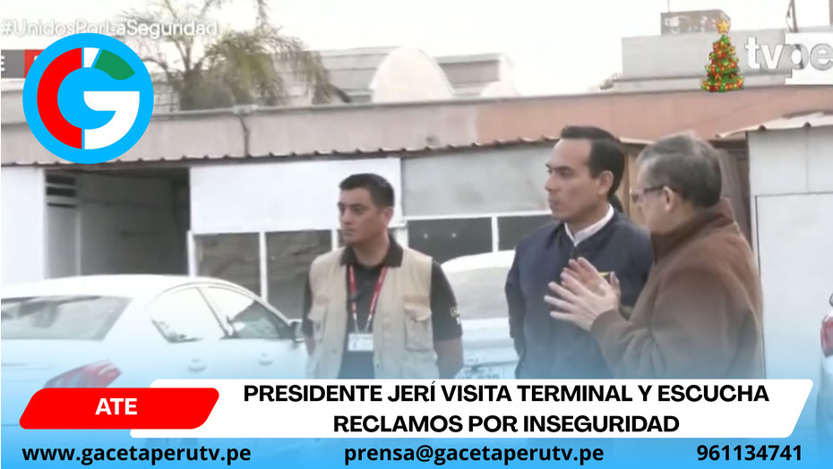 Ate.- En el arranque de su agenda oficial de diciembre, el presidente José Jerí llegó esta madrugada al terminal de la empresa de transportes Trans Service Canadá, ubicado en la zona de Santa Clara, distrito de Ate, para sostener un encuentro directo con representantes del sector y conocer de primera mano cómo la inseguridad viene golpeando a las rutas urbanas.
