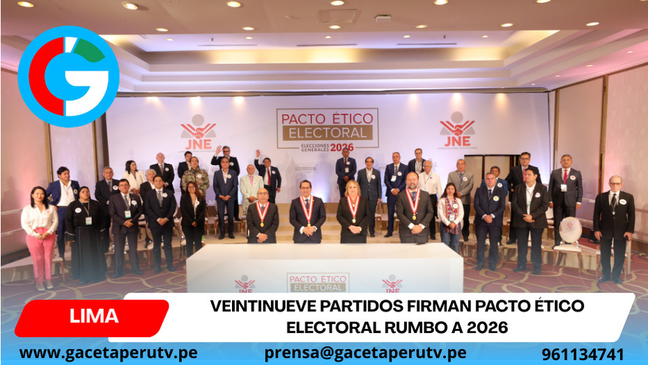 Lima.- Un total de 29 organizaciones políticas que participarán en las Elecciones Generales 2026 (EG-2026) suscribieron el Pacto Ético Electoral (PEE) promovido por el Jurado Nacional de Elecciones (JNE), con el objetivo de garantizar una campaña basada en los valores democráticos, el respeto mutuo y la transparencia.