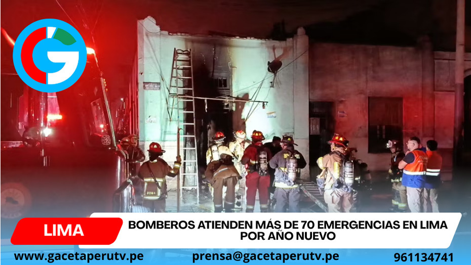 Lima.- Las primeras horas del Año Nuevo 2026 estuvieron marcadas por una intensa jornada para el Cuerpo General de Bomberos Voluntarios del Perú, que atendió más de 70 emergencias en distintos distritos de Lima Metropolitana, principalmente relacionadas con incendios, conatos de incendio y situaciones de riesgo ocasionadas por el uso de productos pirotécnicos durante las celebraciones.