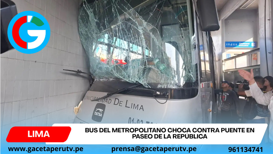 Lima.- Un bus del Metropolitano protagonizó un fuerte accidente este lunes 26 de enero por la mañana en la Vía Expresa Paseo de la República, a la altura de la estación México, en el distrito de La Victoria, Lima.