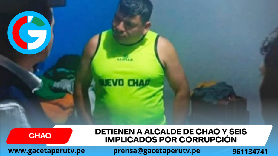 Chao / La Libertad.- Un megaoperativo policial y fiscal ejecutado en la región La Libertad permitió la detención preliminar del alcalde del distrito de Chao, Juan Carlos Soles Carbajal, junto a seis funcionarios y empresarios, investigados por presuntos actos de corrupción en una obra pública educativa ubicada en la provincia de Virú.