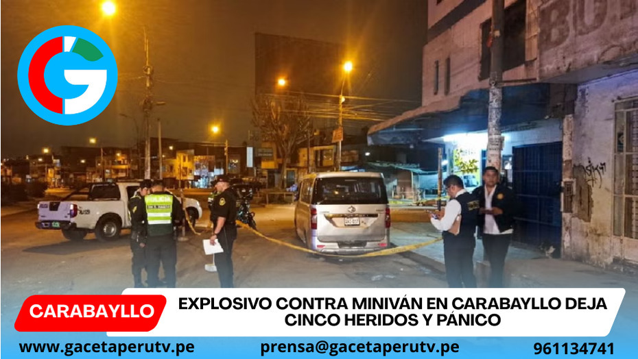 Carabayllo.- Un delincuente lanzó un artefacto explosivo contra una miniván de transporte público en el distrito de Carabayllo, en un hecho que dejó al menos cinco personas heridas y generó pánico entre pasajeros, conductores y vecinos.