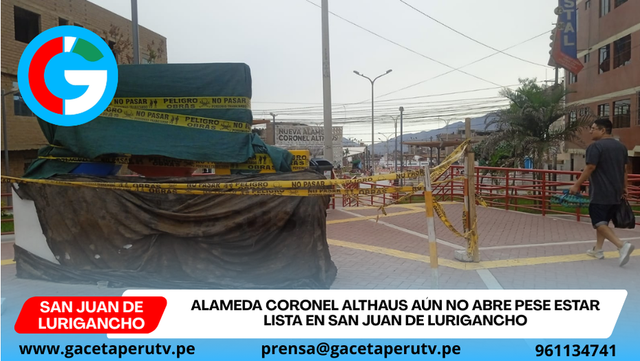 San Juan de Lurigancho.- La expectativa crece en la urbanización Mariscal Cáceres, en San Juan de Lurigancho, donde vecinos aguardan la inauguración oficial de la nueva Alameda Coronel Althaus, una obra ejecutada por la Municipalidad de San Juan de Lurigancho que, pese a estar culminada, aún no abre sus puertas al público.