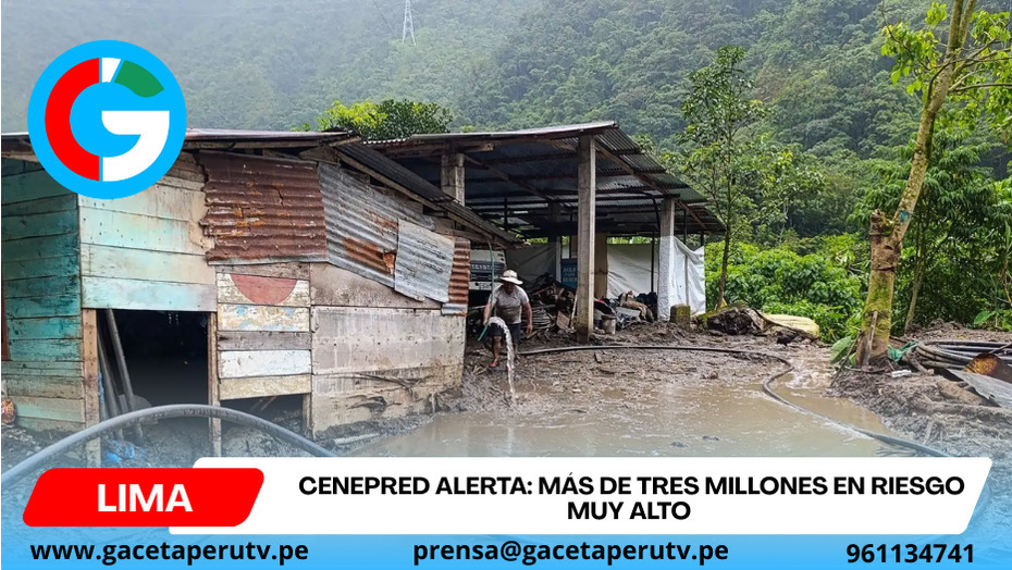 Lima.- El Centro Nacional de Estimación, Prevención y Reducción del Riesgo de Desastres (Cenepred) alertó que más de 3 millones de personas en el Perú están expuestas a un riesgo muy alto por movimientos en masa e inundaciones debido a las lluvias previstas para el periodo febrero-abril de 2026, según el “Escenario de riesgo por lluvias” difundido por el organismo técnico.