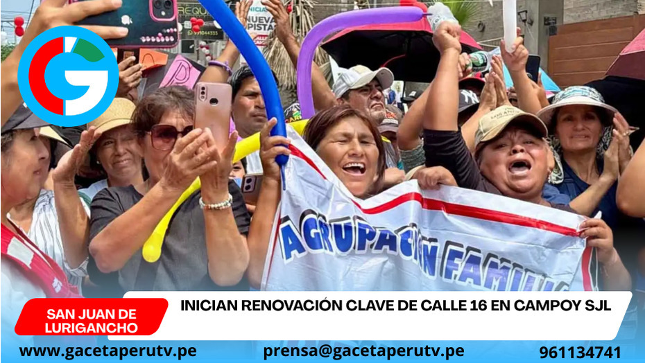 San Juan de Lurigancho.- La Municipalidad de San Juan de Lurigancho inició la transformación integral de la emblemática calle 16 en el sector de Campoy, una obra esperada durante décadas por los vecinos del distrito. El proyecto comenzó con la colocación de la primera piedra en una ceremonia que reunió a cientos de residentes de zonas como Oasis, Ricardo Palma y Alta Paloma, evidenciando la relevancia social de la intervención.