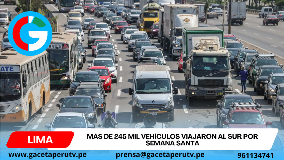 Lima.- Un total de 245,000 vehículos se desplazaron desde Lima hacia el sur del país durante el feriado largo por Semana Santa, en lo que fue calificado como un flujo vehicular “histórico” por las autoridades municipales. Así lo informó el alcalde de Lima, Renzo Reggiardo, al presentar el balance del plan operativo aplicado en la Panamericana Sur.