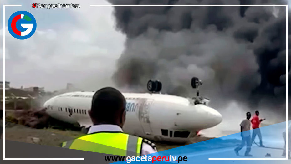 Somalia: Avión se estrella, termina volcado en medio del fuego y no hay muertos