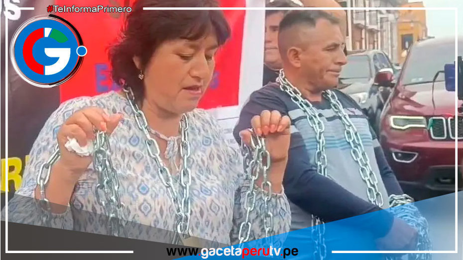 Trujillo / La Libertad.- En una dramática protesta, María Castillo Valverde, alcaldesa del distrito de Marmot, provincia Gran Chimú, región La Libertad, se encadenó en la plaza de armas de Trujillo para exigir resguardo policial frente a las constantes amenazas de presuntos extorsionadores.