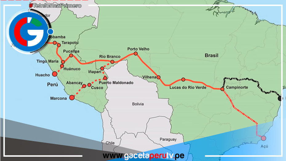 Hasta el año 2020, el proyecto del tren bioceánico contemplaba una ruta desde el Puerto Santos en Brasil hasta el puerto de Ilo en Perú, con 3.755 kilómetros de vías.
