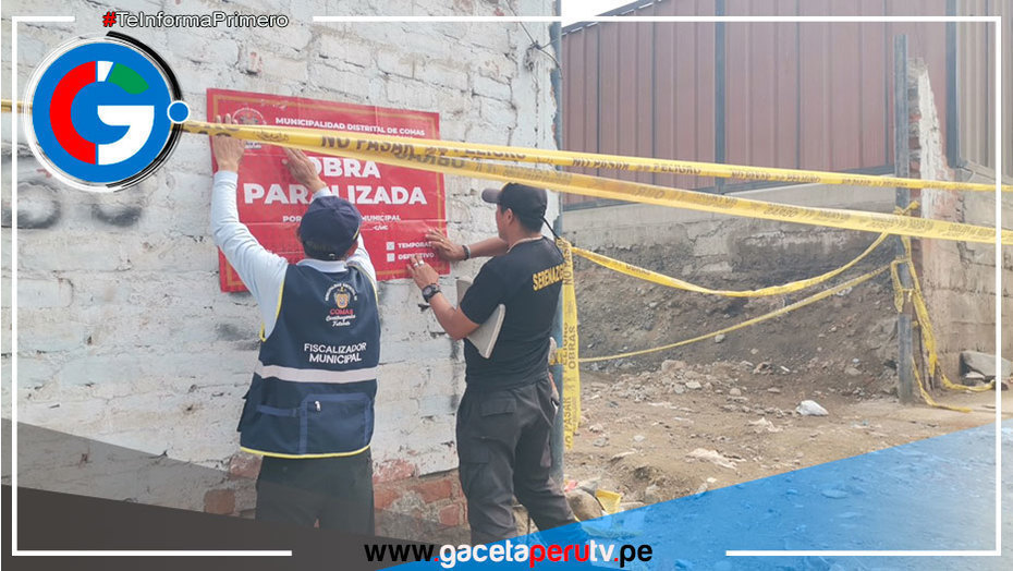 Comas.- En una nueva acción de fiscalización, el personal de fiscalización y serenos integrados de la Municipalidad Distrital de Comas reinstaló la sanción retirada en la "Obra Paralizada" ubicada en los exteriores del Colegio Nacional Coronel José Gálvez, situado en Collique.
