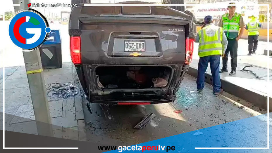 Puente Piedra.- El alcalde de Puente Piedra, Rennán Espinoza, se vio envuelto en un incidente vial este miércoles, cuando la camioneta en la que viajaba, junto a otras tres personas, volcó tras chocar contra una caseta de peaje en la Panamericana Norte.