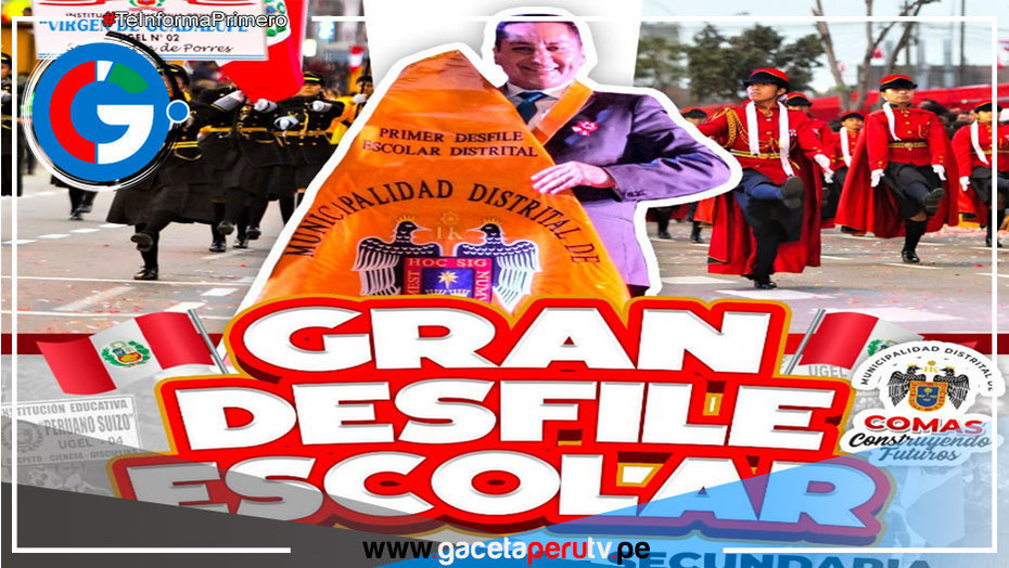 Comas.- El alcalde del distrito de Comas, Ulises Villegas Rojas, ha confirmado la realización del gran desfile cívico escolar que tendrá lugar en la Av. Túpac Amaru y Puente España Km 11 Comas.