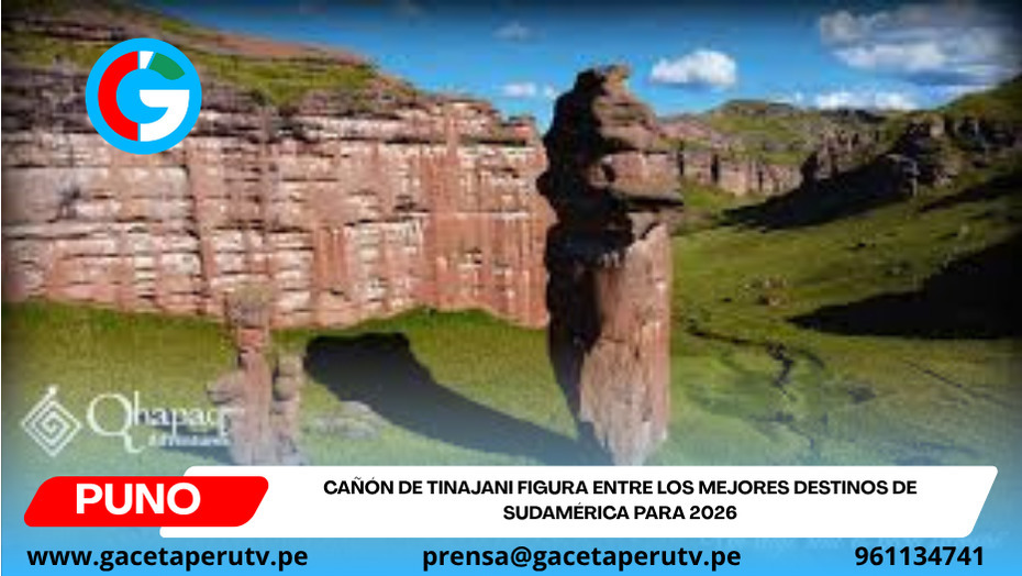 Puno.- El Cañón de Tinajani, en Puno, reconocido por sus formaciones rocosas rojizas, su cielo azul y su entorno altiplánico, ha sido incluido entre los 10 principales destinos para visitar en Centroamérica y Sudamérica en 2026, consolidándose como uno de los atractivos más destacados del año.