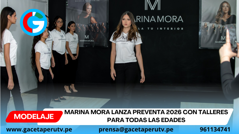 Lima.- La reconocida empresaria y ex Reina de Belleza Marina Mora presenta oficialmente la Preventa de Verano 2026 de Marina Mora Escuela, una propuesta de formación diseñada para fortalecer la seguridad, la elegancia y el empoderamiento de niñas, jóvenes y mujeres adultas. Esta temporada llega con un súper descuento especial de lanzamiento, disponible por tiempo limitado para quienes reserven su vacante de manera anticipada.