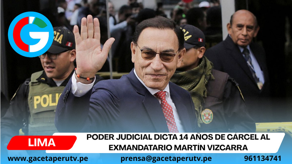 Lima. - El Cuarto Juzgado Penal Colegiado Nacional condenó a 14 años de prisión al expresidente Martín Vizcarra por cohecho pasivo propio en los casos Lomas de Ilo y Hospital de Moquegua. También lo inhabilitó por 9 años para ocupar cargos públicos y le impuso una multa de 730 días, equivalente a 94,900 soles.