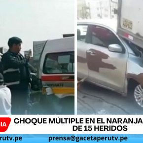 Independencia.- Un choque múltiple de tránsito dejó más de 15 heridos en el sector de El Naranjal, en el distrito de Independencia, en Lima, cuando varias combis de transporte público y un auto particular colisionaron en plena vía vehicular, generando caos y atención médica de emergencia.