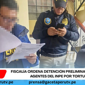 Puno.- La Segunda Fiscalía Supraprovincial Especializada en Derechos Humanos y contra el Terrorismo de Puno abrió una investigación y obtuvo detención preliminar judicial por siete días contra cuatro agentes de seguridad del Instituto Nacional Penitenciario (INPE) por el presunto delito de tortura en agravio de un recluso del establecimiento penitenciario de Puno. La decisión fue confirmada por el Ministerio Público tras las diligencias de hoy en esa región del sur peruano.