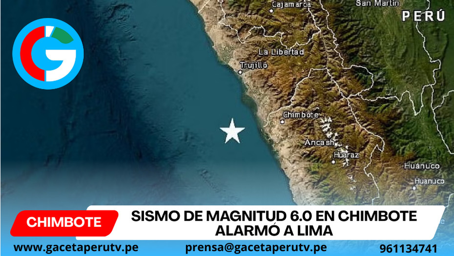 Áncash.- Un sismo de magnitud 6.0 se registró esta noche, con epicentro ubicado a 67 kilómetros al oeste de Chimbote, en la región Áncash, y fue percibido con fuerza en Lima y otras zonas de la costa central, generando alarma entre miles de ciudadanos.
