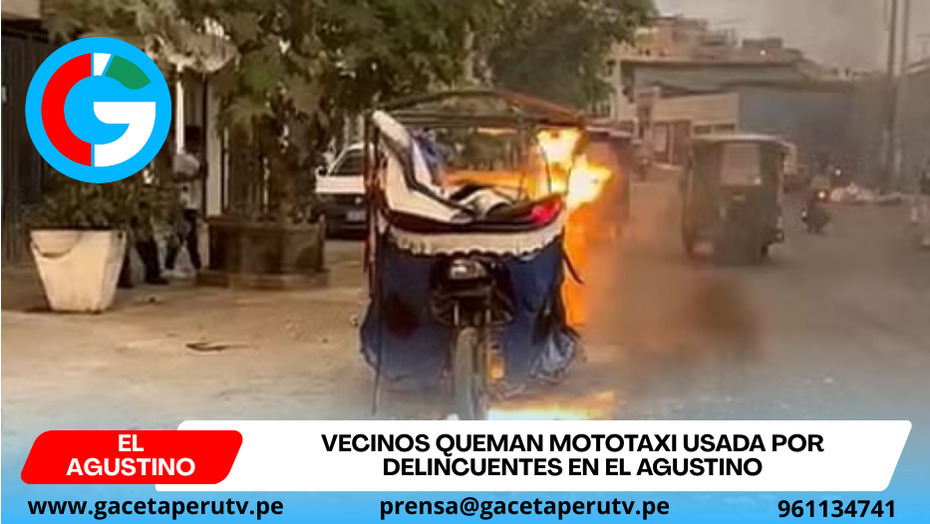 El Agustino.- Un episodio de tensión y protesta vecinal se registró en el distrito de El Agustino, donde un grupo de ciudadanos incendió una mototaxi que presuntamente era utilizada por delincuentes para cometer robos al paso.