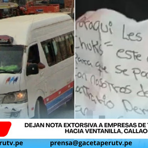 El suceso se registró cuando un chofer recibió una nota con exigencias de pago de cupos, presuntamente enviada por integrantes de la banda criminal autodenominada “Los Chuquis”, mientras transitaba por la avenida Néstor Gambetta, a la altura del óvalo Cantolao.