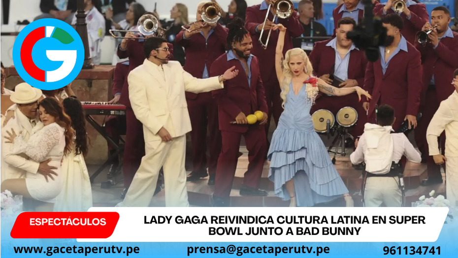 Lima.- En la edición LX del Super Bowl, celebrada el 8 de febrero de 2026 en el Levi’s Stadium de Santa Clara, California (EE. UU.), la artista estadounidense Lady Gaga se convirtió en una figura destacada al protagonizar momentos simbólicos que reivindicaron la cultura latina durante el espectáculo de medio tiempo encabezado por el puertorriqueño Bad Bunny. Su participación y su vestuario fueron interpretados como gestos de respaldo al mensaje cultural y social que marcó esta actuación musical masiva.