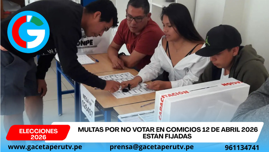 Lima.- El Jurado Nacional de Elecciones (JNE) confirmó los montos de las multas electorales para los ciudadanos que no participen en las Elecciones Generales del 12 de abril de 2026, donde se elegirá al presidente de la República, vicepresidentes, 130 diputados, 60 senadores del Congreso bicameral y cinco representantes ante el Parlamento Andino.