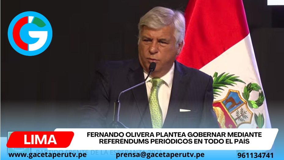 Lima.- En el marco del debate electoral rumbo a 2026, el candidato presidencial Fernando Olivera, líder del Frente de la Esperanza, planteó una propuesta que apunta a transformar el sistema político: gobernar mediante referéndums cada seis meses, trasladando decisiones clave directamente a la ciudadanía.