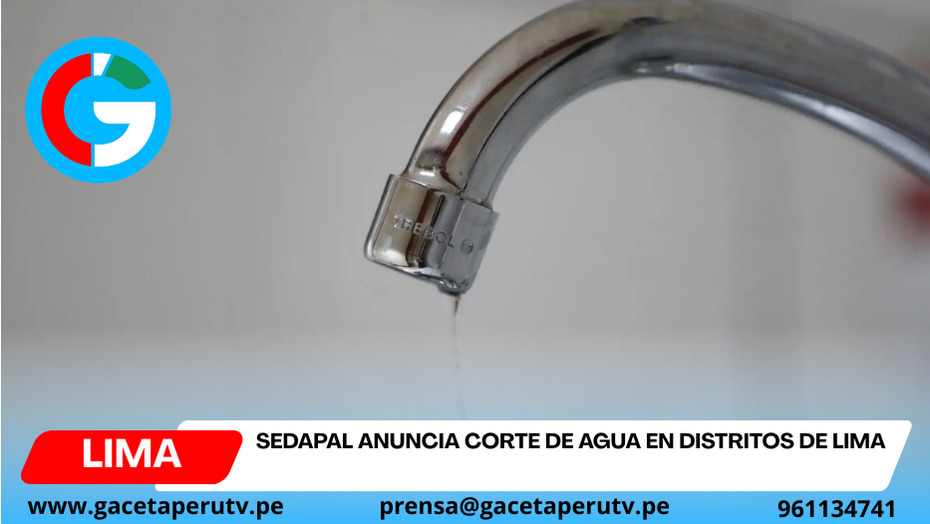 Lima.- El Servicio de Agua Potable y Alcantarillado de Lima (Sedapal) informó que se ejecutarán cortes temporales del servicio de agua potable en distintos distritos de Lima entre el martes 17 y el jueves 19 de marzo, como parte de trabajos programados de mantenimiento y mejoras en la infraestructura.