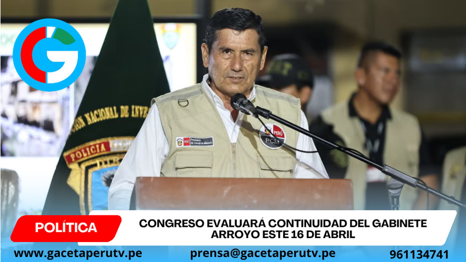 Lima.- El presidente del Consejo de Ministros, Luis Enrique Arroyo Sánchez, se presentará el próximo 16 de abril ante el Congreso de la República para solicitar el voto de confianza, en un proceso clave que definirá la continuidad de su gabinete en el Ejecutivo.